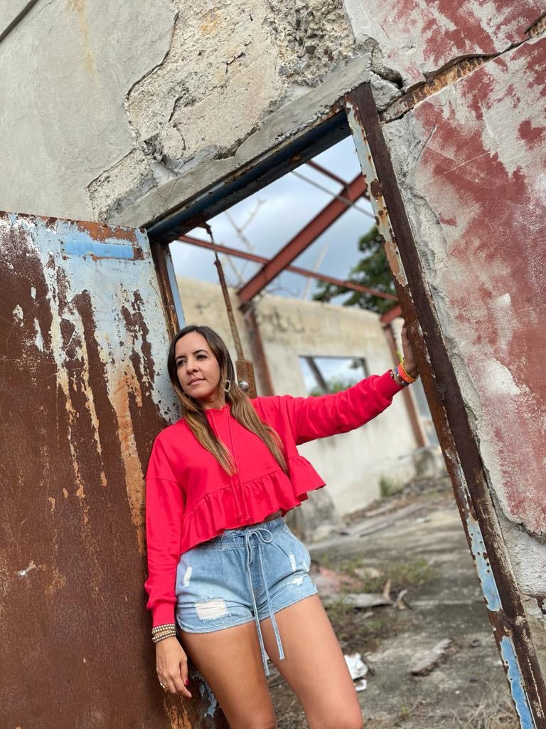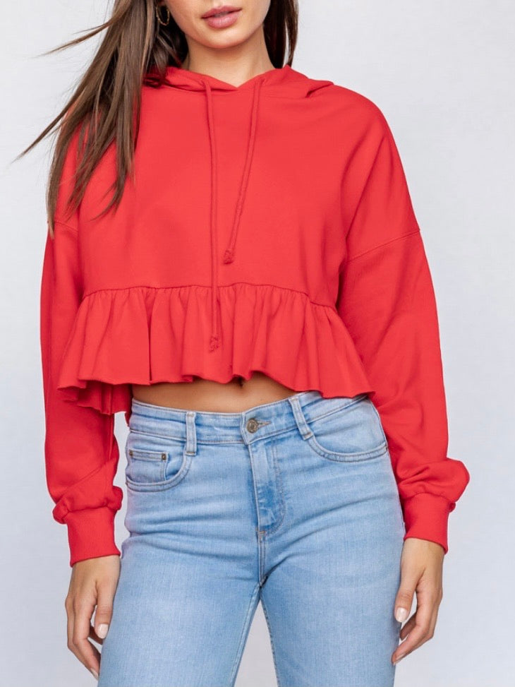 Red Tiered Ruffle Hoodie Sweatshirts