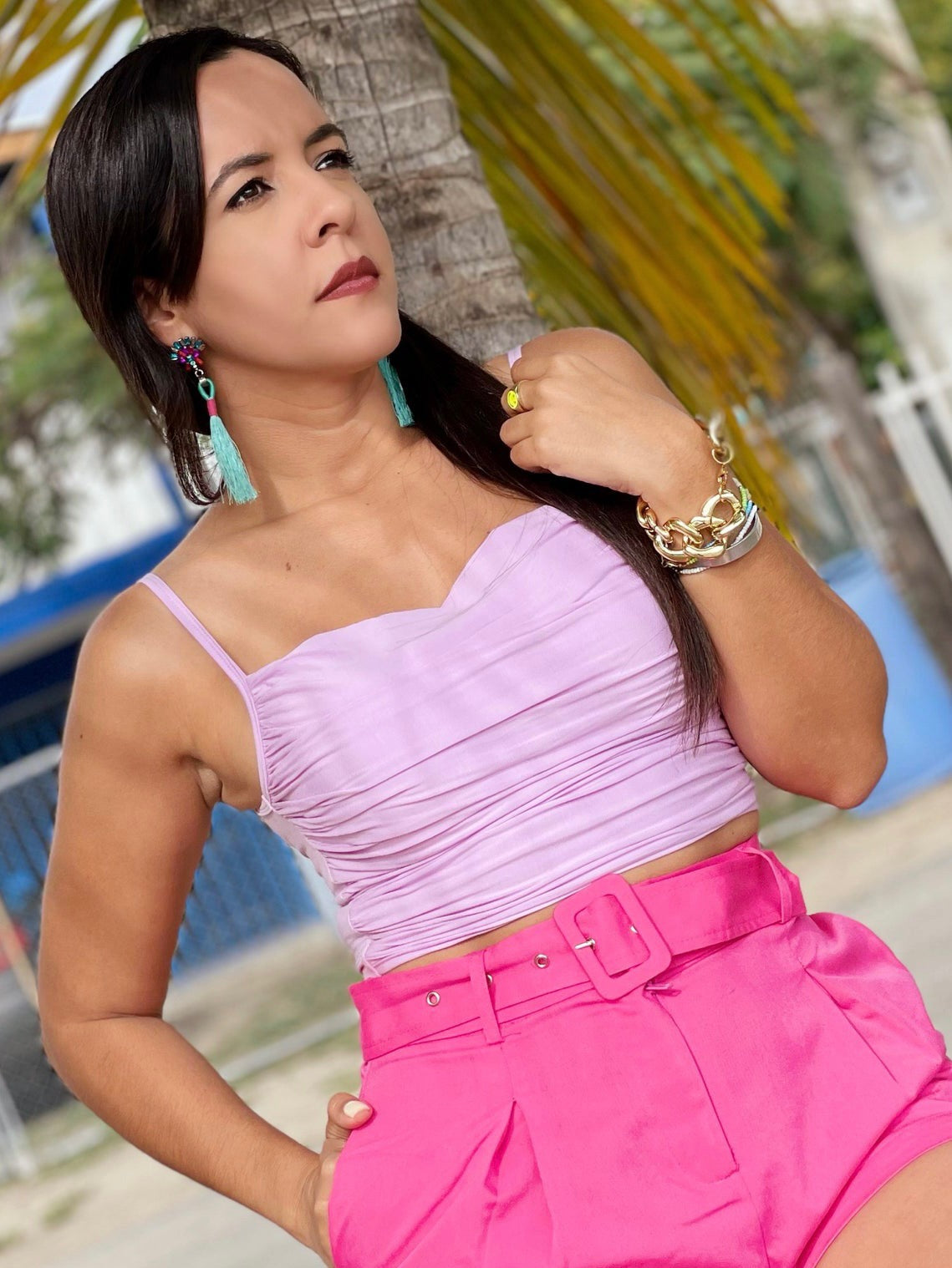 Medidas modelo: 34B Busto, 29 Cintura, 41 1/2 Cadera, Estatura 5’7”