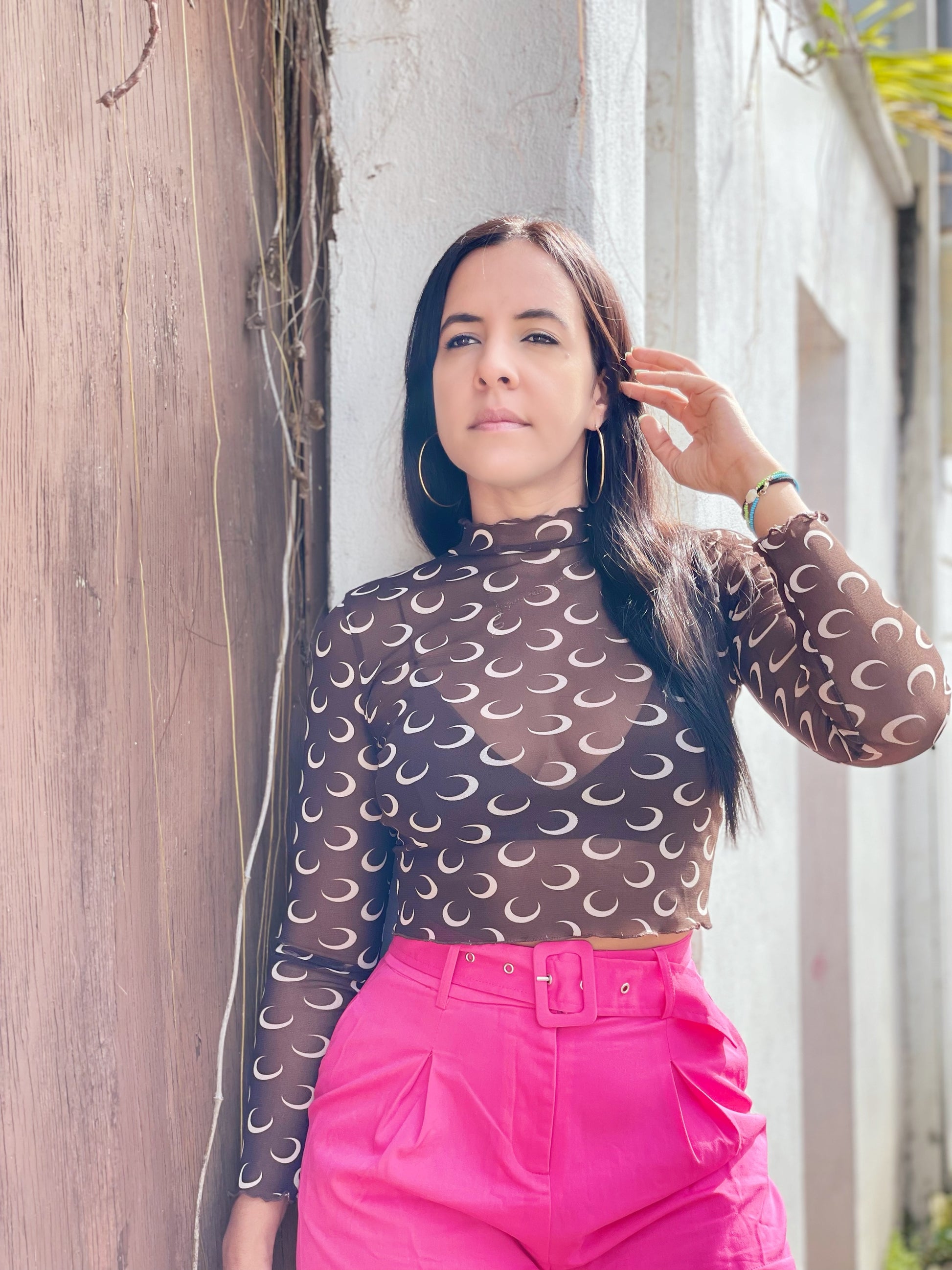 Medidas modelo: 34B Busto, 29 Cintura, 41 1/2 Cadera, Estatura 5’7”